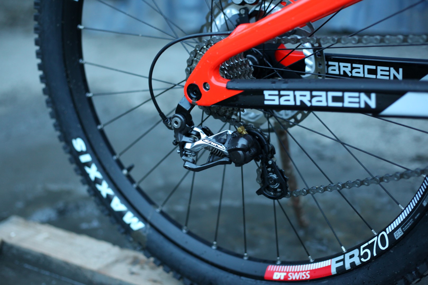 The Myst really is not a bad machine though – look at the spec that is given for the £5,699. Fox dampers, DT Swiss wheel set, Shimano Saint all round. Nothing to be changed here. The Saracen Myst does chew up the terrain when you do get up to speed, taking Revolution Bike park and Antur Stiniog at its leisure. This is mainly down to the rear suspension system. The same as you will find on its shorter travel stablemate the Ariel. This is a smooth and fairly simple design that just works well.